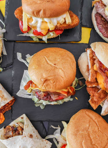 Doppio hamburger smashed , cheddar , insalata ,Pomodoro e cetrioli